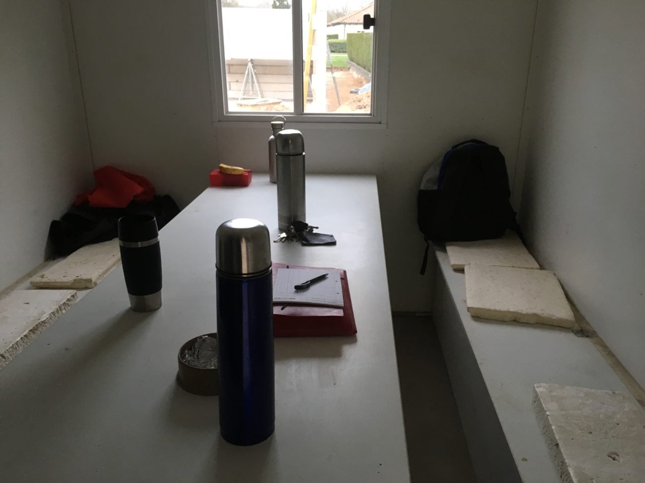 Um eins sitzen wir dann beim Mittagessen. In meiner Fantasie hatte ich tags zuvor an Pommesbude und Currywurst-Pommes-Schranke geglaubt. Der Trupp sieht mich ungläubig an und lacht. „Ne, wir haben uns alle was mitgebracht“, grinst Marcel und lässt die Tupperdose klacken. Nach der Dubbel um zehn bleibt mir immerhin eine Banane zu Mittag. Die Stimmung in der Baubude kurz vor dem Erreichen des Tagesziels übertönt mein Magenknurren. Alle starren auf ihre Handys, worüber Frank den Kopf schütteln muss: „Früher haben wir uns noch unterhalten“, schaut er nur den Azubi strafend an. Malte muss lächeln. Wahrscheinlich kennt er den Vorwurf und er ist Teil eines mittäglichen Rituals. Jedenfalls kommen die beiden über eine App für Hobbyfußballer, die der Junge gerade ausgiebig testet, auf Profifußball und Achillessehnenrisse zu sprechen.